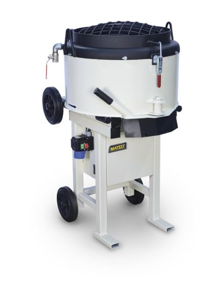 The MATEST Pan Type Mixer Top Range guarantees excellent mixing results, especially when working with small quantities of material. Designed for high-level performance, it efficiently mixes mortar and concrete mixtures with grain sizes up to 16 mm. Featuring a quick and practical drainage valve at the base of the drum, it ensures easy discharge. Built with a solid and robust construction, this mixer offers a very long lifespan and reliable operation for demanding laboratory and site environments.
